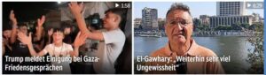 2 Minuten Triumph von Trump vs. 6:29 Minuten differenzierte Berichterstattung. Ich traue Karim El-Gawhary deutlich mehr Realitätsbezug zu als Trump 2.0.